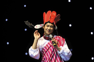 在終于等到“男主角”小沈陽一身跑偏的蘇格蘭裙上場后,更多女粉絲對他的招牌瞇眼一笑報以瘋狂掌聲,依然《我是小沈陽》,依然抱著小花包啃蘋果,再加上5月1日與成龍、趙本山合唱的《我的好兄弟》——這些早已在網絡上流行的段子絲毫沒有影響臺下觀眾的興高采烈。而小沈陽牽著童趣十足的玩偶小馬,頭戴鞋墊帽,對媳婦兒一句“御弟哥哥”回以“八戒”的山寨版《西游記》,雖然此前也在其他巡演站亮相,在申城卻已算新鮮成分,贏得了觀眾不少掌聲和歡笑。