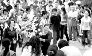 昨日20時20分,工作人員陸續離開,仍有百余名觀眾不肯離去。