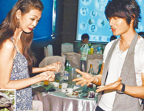 中新網7月23日電 偶像劇《泡沬之夏》前晚舉行殺青酒,演員喝酒high翻天,完全顧不得形象,黃曉明被拱上臺與何潤東(Peter)大跳韓國團體Super Junior的《Sorry,Sorry》,還與林嘉綺劃數字拳拼酒,她竟不顧名模形象突然露出《侏羅紀公園》里迅猛龍模樣,玩得十分投入。唯一全身而退的是大S,但她也不好過,因拍殺青戲時,她被何潤東撞到脖子扭傷,只能上下動,不能左右動。