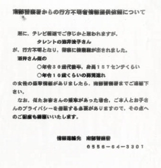 中新網8月6日電 5日,日本警方透露下落不明的女星酒井法子曾經出現在山梨縣身延山附近。丈夫高相祐一因為攜帶毒品被警方逮捕以后,酒井法子帶著兒子為什么會出現在山梨縣境內惹起網友眾多猜疑。