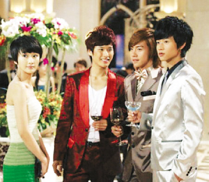 雖然《一起來看流星雨》從開拍時就標榜自己是“原創”的勵志劇。但從它的簡稱“流星雨”中,人們就可察覺到它和當年F4主演的《流星花園》扯不斷理還亂的關系。該劇從人物個性、情感關系、劇情發展、橋段設計到語言細節,處處都有《流星花園》的影子。劇中端木磊扶起垃圾桶的回眸一瞥、喜歡獨自待在天臺的癖好、精通樂器同時喜歡比自己年長的女人……都是在拷貝《流星花園》。女主角楚雨蕁幾乎就是臺灣版《流星花園》中杉菜的翻版,就連兩位女主角被捉弄的方式都如出一轍。