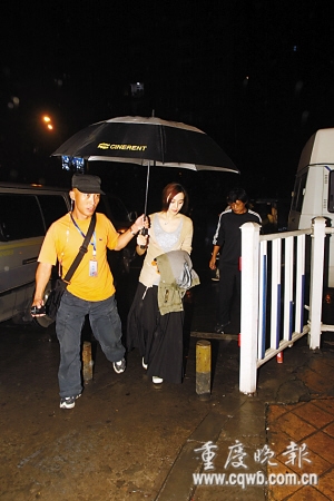 當晚凌晨,范冰冰乘一輛黑色別克轎車到達超市外的公路旁。范冰冰顯得非常隨意,下車之后閑庭信步地在沿公路走到超市,只有一個工作人員拿著一把大傘上前“接駕”。范冰冰當晚已是帶妝到達片場,穿著一身連衣裙,看上去非常優雅。看到有記者拍攝,撐傘的工作人員馬上學習劉德華、趙本山的經驗,一把大傘將范冰冰遮得嚴嚴實實。
