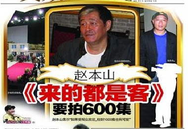 昨日下午,趙本山與遼寧廣播電視臺聯(lián)合制作的600集室內(nèi)喜劇《來的都是客》在本山傳媒影視基地舉行了開機儀式。