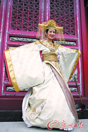 頭頂黃金冠,身披金色鳳袍,脖子上還扣著一串沉甸甸的金鏈子,這是吳君如所有參演的王晶電影里最賢良淑德、精美絕倫的一次。不過,在橫店白天30攝氏度的高溫下,這套華麗的“戰衣”吳君如一穿就得12個小時。此外,吳君如還得忍受對女兒的相思之苦!拔叶7天沒有見她了!還好過兩三天就拍完了。”她告訴記者,因為舍不得女兒,之前來劇組報到的時候自己特別選了香港到杭州最晚的一班飛機,為的就是要賴到最后一分鐘,多陪女兒一會兒。“陳可辛都跟我‘投訴’ 了。他在上海拍《十月圍城》,問我為什么不能先飛到上?纯此賮頇M店。說實話,我都沒想到他。我只是想,從上海到橫店要多花兩個小時,我還是把這點時間陪女兒好了。”