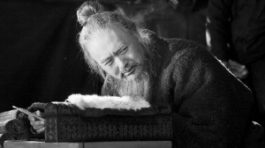 據有幸看到劇照的業內人士透露,不少片商首先被周潤發的單人劇照所打動:周潤發飾演的孔子斫簡著書,驀然回首,雖然是白發蒼蒼的老人形象,卻不見“蒼老 ”,他的眼神表現出一種時光積淀的睿智。該劇照通過捕捉孔子以至老而忘倦的瞬間形象,展現了圣人“學如不及,猶恐失之”的精神大域,呈現出濃郁的中國古風。