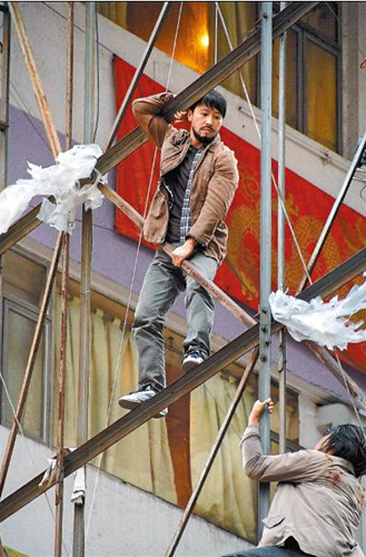 臺灣媒體消息,黎明前天在銅鑼灣鬧市區拍攝一場驚險追逐的戲,現場只見黎明在5層樓高的鷹架上爬來爬去,看得叫人為他捏把冷汗。