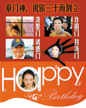 前天是2月9日,章子怡31歲生日,繼“潑墨門”、“詐捐門”、“誘惑門”(周潤(rùn)發(fā)稱出演《臥虎藏龍》時(shí)曾受到某女星誘惑,網(wǎng)友紛紛將懷疑對(duì)象鎖定章子怡)之后,如今又誕生了一個(gè)新的八卦“門”———“封湯門”:導(dǎo)演陸川微博發(fā)文引網(wǎng)友熱議,章子怡被指疑似封殺湯唯幕后黑手。