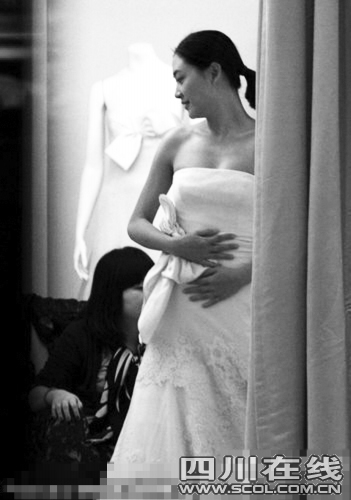 當日,應采兒先試穿了一件大露背簡約設計拖地白禮服,新娘姿態立即顯現,由于裙擺過長,大約四五個助理及店員蹲在地上,為陳太太整理禮服。應采兒對著鏡子反復照看,又俯身翻看擺在桌上的圖冊,進試衣間換上第二套。同樣是簡潔大方的經典設計款,腰間的綠色綢緞腰封更顯身材,應采兒的表情顯示她更青睞這一套,對著鏡子陶醉半天,不停轉身,從各個角度欣賞鏡中的自己,笑容也愈發燦爛,遠遠看去就像一個即將踏入婚姻殿堂的普通女孩,一臉幸福。最后應采兒換上第三套香檳色深V小禮服,優雅的設計和顏色同樣很襯托應采兒的膚色,三件禮服各有千秋,應采兒卻相當有主見,很快選擇其中一套,滿載而歸,步出店外時應采兒同店員告別,心情越發燦爛。據悉,這個品牌的婚紗價格不菲,一套婚紗的價格大約在8000美金到12000美金之間,最貴的能買下一輛名車,但憑借過硬的品質和永遠不出錯的設計,依舊讓全世界的明星們趨之若鶩。珍妮弗·洛佩茲,莎朗·斯通等好萊塢明星都是她的忠實擁躉,劉嘉玲不丹大婚時,亦身著的是該品牌婚紗。