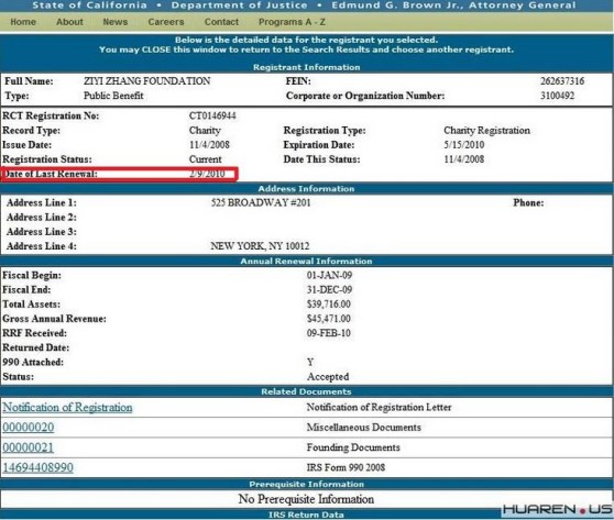 網友疑惑:上美國IRS政夫網站發現子怡基金是在2009年5月份失效。您是在2010年2月9日重新激活的,有視頻截圖。