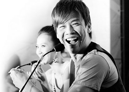 4點(diǎn)半光景,身披小馬甲的陶喆和弦子先后出場(chǎng),并作“活力無(wú)限”狀,但老記們明顯仍在“留戀”朱丹,大多意興闌珊。無(wú)奈,弦子只好主動(dòng)出擊,力曝拍廣告的時(shí)候自己不敢緊靠偶像陶喆,陶喆倒也懂得投桃報(bào)李:“其實(shí)是她太高了,攝影師讓我們背靠背的時(shí)候,她總是很有‘風(fēng)度’地蹲得比我更低,好讓我看上去更偉岸些。”
