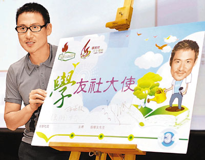 中新網(wǎng)5月26日電 張學(xué)友昨日出席青年機(jī)構(gòu)活動(dòng),獲委任為“學(xué)友社大使”,學(xué)友透露當(dāng)年面對(duì)升學(xué)就業(yè)抉擇,又透露太太羅美薇希望子女成才,做個(gè)專(zhuān)業(yè)人士。