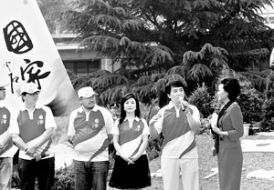 昨天,國際巨星成龍率領(lǐng)新中國成立六十周年獻(xiàn)禮歌曲《國家》主創(chuàng)團(tuán)隊走進(jìn)西柏坡,并舉行《國家》MV首映典禮。