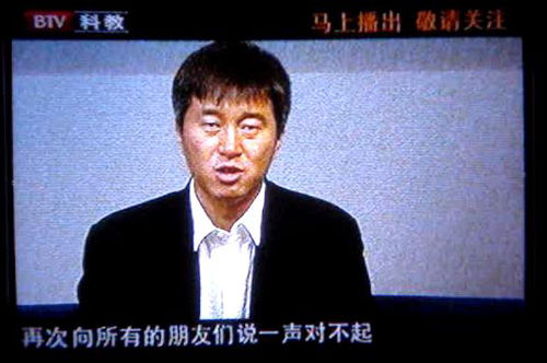 今天中午12時(shí),一個(gè)身穿黑色西服的蕭瑟背影出現(xiàn)在北京電視臺(tái)《法治進(jìn)行時(shí)》欄目中,因吸毒被拘留的歌星滿文軍首次向公眾道歉。記者看到滿文軍在道歉過(guò)程中多次說(shuō)到“我錯(cuò)了”,并表示今后將先做好人,再唱好歌。