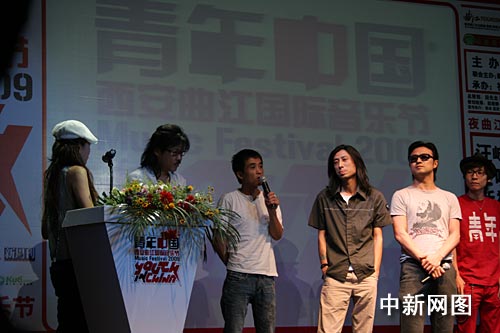 中新網(wǎng)7月2日電(楊洋) “青年中國(西安曲江)國際音樂節(jié)——2009新聞發(fā)布會暨青年音樂發(fā)展計(jì)劃啟動儀式”于7月2日在京舉行。汪峰、張楚、謝天笑等知名音樂人到場助威,現(xiàn)場氣氛火爆。本次音樂節(jié)將于7月10日在西安曲江開幕,是國內(nèi)第一個時尚視覺音樂節(jié)。