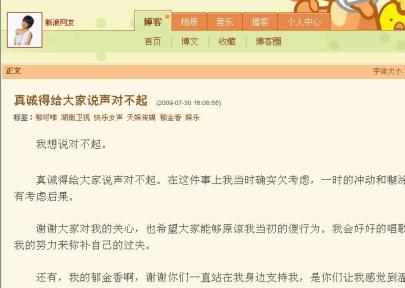 一直在“快女”中使用23歲年齡的郁可唯早前被網友爆料隱瞞已經26歲的真實年齡,并被指出23歲的年齡與多項賽前經歷產生沖突。此外,一名知情人還爆料,郁可唯確實出生于1983年,而今年參加“快女”是采用假身份證報名,目前已被識破,不過該消息并未得到天娛以及湖南衛視方面的肯定。7月30日下午,郁可唯在個人博客中公開道歉,承認確實在“快女”比賽中改動過年齡:“真誠的給大家說聲對不起。在這件事上我當時確實欠考慮,一時的沖動和糊涂,沒有考慮后果。”目前已知犯錯的郁可唯還表示希望當初的傻行為能夠被原諒,而她本人也會更努力的唱歌盡力彌補過失。