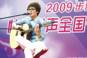 曾:嗯,最初是寫歌詞,當時是初三,因為考試壓力大,就自己涂涂畫畫寫出來了。開始有曲譜配歌詞是高三的時候,會彈吉他了。《學習×××的日子》(由于她說話聲音實在太綿羊,重復了3次,記者還是沒聽清楚歌名),是一首校園歌曲,這是第一首完整的歌,也是完整的曲,就為了鼓勵考英語專業四級的人們,加油、努力,只唱給自己的朋友聽過。大家覺得,還行吧。