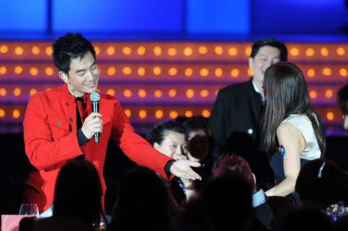 中新網2月22日電 任賢齊年初七在澳門舉行“任賢齊星級晚宴演唱會”,邀請了陳冠希愛將農夫擔任表演嘉賓,關心妍與老公楊長智前來捧場。小齊在臺上不忘向觀眾拜年及大派禮物,其后走到臺下四處獻吻及任攬任抱,事后任賢齊笑言感覺很幸福。
