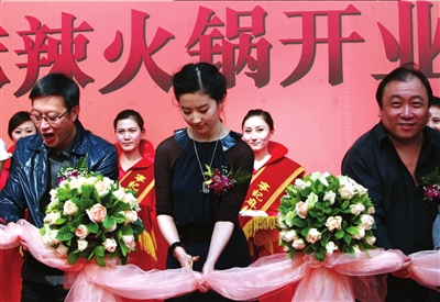 據(jù)悉,朝陽門外悠唐廣場的這家店也是寧記火鍋北京首家分店。據(jù)業(yè)內(nèi)人士透露,這家火鍋店的投資人除了三大導演外,還有范冰冰、黃曉明和舒淇等幾個大明星。這幾位因檔期錯不開,沒能前來出席昨天的剪彩儀式,不過他們也送來了對嘉賓的祝福和對自己新店的祝愿。由于是港式火鍋店開業(yè),所以開業(yè)儀式都依足了傳統(tǒng),廣場外眾明星嘉賓剪彩后,更有熱鬧的舞獅表演。許多逛街的白領(lǐng),突然看到眾多明星出現(xiàn),大家一擁而上,拿起手機一陣狂拍,場面十分混亂。