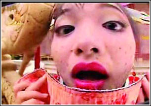 對于越南版《還珠格格》,記者看到在這個(gè)MV中,幾位衣著神態(tài)都酷似“小燕子”、“紫薇”的演員在越南文《自從有了你》的歌聲下,一會兒惶恐地跪倒在“皇太后”面前磕頭,一會兒被“容嬤嬤”按著頭放倒在浴缸里灌水,包括小燕子被蜜蜂蟄、飛上屋檐抓鸚鵡等情節(jié)都與原版如出一轍。