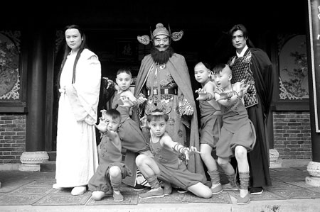 不過,歐陽震華想讓自己變胖其實還有更深層次的考慮。他說,來橫店一個多月了,平時也仔細留意這里的各色人等,發現無論是工作人員還是演員,胖的很少,特別是演員,即使是群眾演員也沒幾個胖的!艾F在演員這行業競爭這么激烈,大家都變瘦肯定會沒飯吃啦,而我提前讓自己胖起來,說不定以后戲就多嘍,你瞧,這《天師鐘馗》就是因為我長得有點胖才讓我當主角的嘛!”