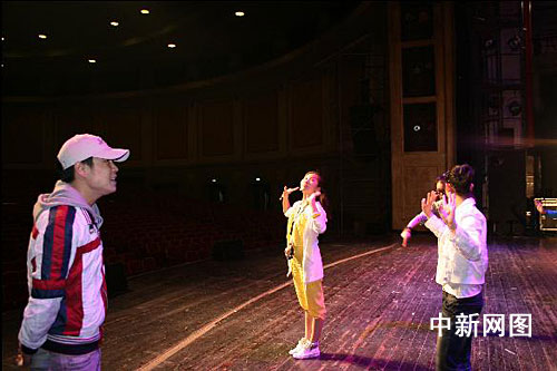 中新網(wǎng)4月21日電 目前,由北京華夏弘揚國際文化藝術(shù)有限公司全程總運營的《劉老根》大舞臺——小沈陽笑動2009;昨晚和今晚將在三亞上演;昨天下午記者在排練現(xiàn)場見到了小沈陽;與《我叫小沈陽》的伴舞;開始排練時,小沈陽并沒有開聲演唱,只是看舞蹈演員的整體效果進(jìn)行指點。到了晚上19點左右,舞蹈領(lǐng)隊找到小沈陽,來最終確定舞蹈結(jié)尾的位置。