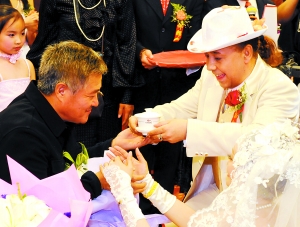 趙本山以“洋徒弟”博比·肯父親的身份致辭,并接受了新人斟上的“師傅茶”。昨日上午,趙本山在京出席了烏克蘭籍徒弟博比·肯和《劉老根》副導演張雯婷的婚禮。“鑼鼓喧天,鞭炮齊鳴,紅旗招展,人山人海。”用小品《小崔說事》中的經典臺詞形容昨日的婚慶現場再合適不過。趙本山從東北帶來了腰鼓隊和嗩吶手為婚宴助興,并親自為舞獅隊中的龍獅點睛。面對30桌賓客,趙本山豪爽宣布:“今天沒帶什么禮物,所有吃喝我都買單了。”記者 郭延冰 勾伊娜 實習生吳丹 攝影報道