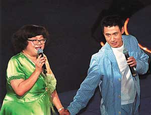 張學友在1987年就認肥姐為干媽,兩人因為在電影《南北媽打》中飾演母子而結緣。張學友無疑是肥姐最疼愛的干兒子,他直接叫肥姐“媽咪”,而肥姐則親昵地稱他“七仔”(張學友花名)。去年8月17日,病重的肥姐依然出席了張學友在香港的演唱會。而張學友則十分體貼地在臺上獻唱肥姐最喜歡的《輕撫你的臉》,并稱是特別獻唱這首歌送給最尊敬的長輩,因干媽第一次聽他的歌正是此曲。