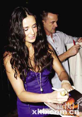 黛米·摩爾亮相電影首映秀鉆戒 低胸紡裙迷人(圖)