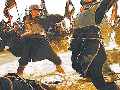 《見龍卸甲》"穿幫"劇照 趙子龍腳踏可樂瓶