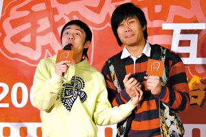 前天,由好萊塢著名女制片人羅燕導演的國內首部電玩動作喜劇電影《哈!哈!哈!》在北京舉行啟動儀式,該片主演之一后舍男生(右圖)搞笑亮相。羅燕透露,該片初步確定上映的日期為5月上旬。