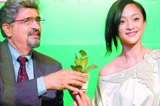 “大使”周迅首先給記者們“上了一課”:主辦方贈與每位與會者一盆小的盆栽植物,周迅拿起來看了看,說“綠色代表希望,這盆小植物是活的,請大家像愛護自己一樣愛護這個地球。”接著,突然意識到什么,她揭去了植物外面包裹著的塑料袋并說道,“在生活中,我們盡量不要使用塑料袋。”