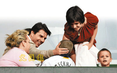 圖文:湯姆·克魯斯攜妻助陣貝克漢姆球賽