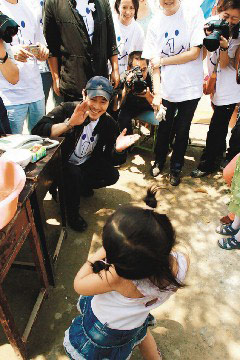 中新網(wǎng)5月23日電 演藝界賑災(zāi),獻(xiàn)金更獻(xiàn)愛心。李連杰持續(xù)留在成都,幫助重災(zāi)區(qū)江油的學(xué)生們復(fù)學(xué)。
