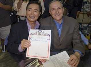 中新網6月18日電 加州在16日成為美國第二個允許同性戀結婚的州,17日加州各地就有數百對同性戀進行結婚登記,其中還包括曾經演出《星際迷航》的日裔美國演員竹井喬治(George Takei),不過也有一些保守人士進行抗議,批評同性戀婚姻是種變態婚姻。