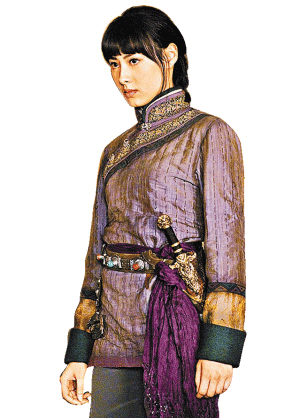 這次李連杰扮演的龍帝(右圖),令人聯想起中國古代暴君秦始皇。他渴望長生不老,而楊紫瓊演的女巫則擁有不死天書,李連杰不但達成長生不老的愿望,還想占有她,可楊紫瓊卻愛上了羅素扮演的將軍,并生下梁洛施,李連杰遂將羅素五馬分尸,悲慟的楊紫瓊遂向李連杰施咒變兵馬俑。而梁洛施在戲中是已活了2000年的美少女,戲份貫穿始終,比楊紫瓊更搶鏡。