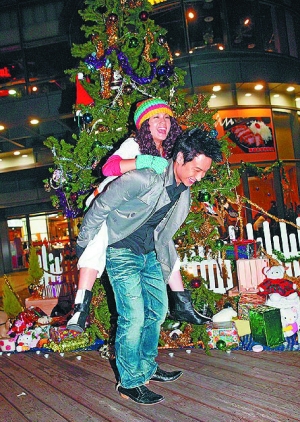 楊丞琳潘瑋柏高溫過圣誕節 拍吻戲互扮鬼臉(組圖)