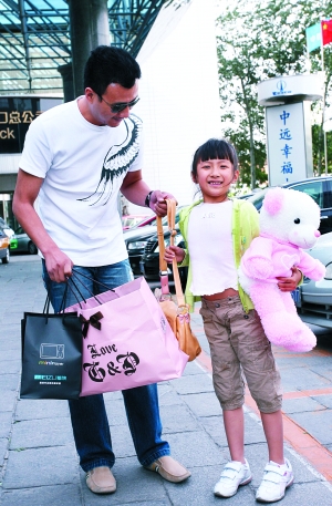 “爸爸年底就給你添個伴兒。ㄔO計臺詞)”今年5月胡軍帶著女兒看望從地震災區送到北京醫治的孩子。玄反影 攝