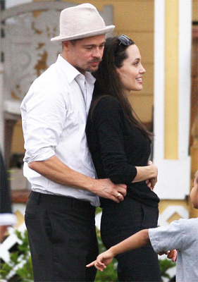 中新網(wǎng)10月9日電 安吉莉娜·茱莉與男友布拉德·皮特昨天赴美國新奧爾良市參觀房屋重建計劃進程,皮特也是這一計劃的號召人之一。兩人在新奧爾良街頭甜蜜相擁,茱莉?qū)㈩^輕倚在皮特的肩頭,沉浸在愛的浪漫氣氛里。