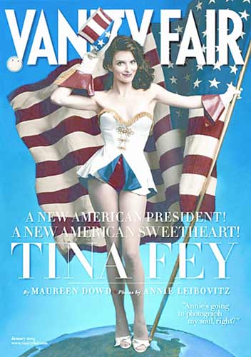 《名利場》雜志2009年1月號封面,邀在大選期間因模仿共和黨候選人莎拉·佩林而走紅的蒂娜·菲當封面女郎。照片中,菲穿著美國國旗色的性感低胸超短裙,手執美國國旗,神采飛揚,雜志封面的大標題是“新美國總統,新美國甜心”。蒂娜·菲還在該雜志的專訪中透露自己是扁平足患者。