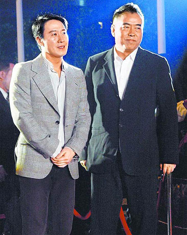 黎明(左)昨赴臺與陳凱歌出席《梅蘭芳》首映。
