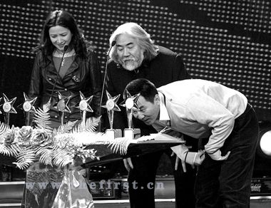 頒獎現場還出現了許多花絮。在陳建斌準備領取 “中國劇風尚懷舊英雄劇創新角色”時,擺在頒獎嘉賓張紀中和何晴面前的卻有一排獎杯,“我先給你找找啊,別給錯了”,張紀中只得挨個尋找,無奈現場的燈光偏暗,張紀中拿起其中一個問何晴“是這個嗎?”何晴看了半天,搖了搖頭,無奈之下,張紀中招呼等在一旁領獎的陳建斌自己來找獎杯。“還有這樣的呢,領獎嘉賓自己給自己找獎杯。”連主持人李斌都看不過去了。想必這個獎對陳建斌來說可是“來之不易”。記者 張碩 趙風果 攝