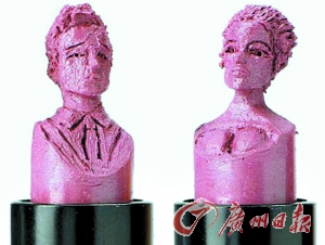 300美元親“茱皮” 50小時刻口紅人像雕塑(圖)