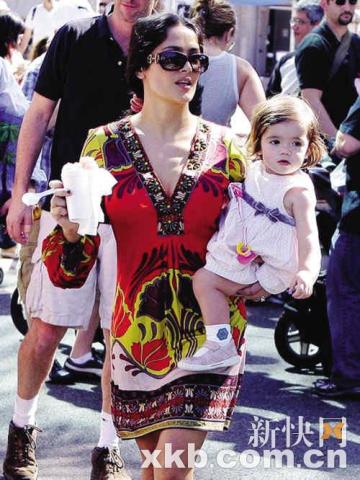 海耶克婚后首次亮相精神好 女兒宛若小公主(圖)