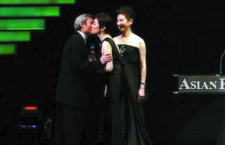 作為亞洲電影大獎重量級頒獎嘉賓,林青霞并未現身紅毯,在頒獎禮臨近尾聲時,林青霞一襲黑色長裙優雅亮相,為徐克和施南生創立的“電影工作室”頒發“杰出貢獻大獎”。林青霞除了贊揚徐克和施南生25年來對電影工作的貢獻,還以“我的好朋友”稱呼徐克和施南生。雖然昔日的神仙眷侶徐克和施南生已經離婚,但徐克在領獎時深情地親吻施南生面頰,在場觀眾無不動容。