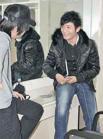 黃曉明黑馬王子造型亮相 跪地向女歌迷示愛(ài)(圖)