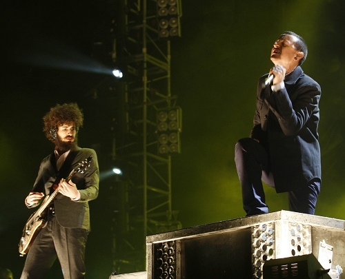容易受傷的林肯公園主唱Chester(右)史訓鋒 早報資料