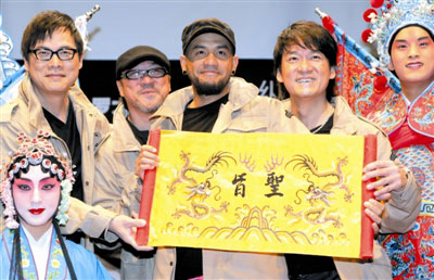 昨天,一場以京劇元素引出的縱貫線北京演唱會發布會在皇家糧倉舉行,羅大佑、李宗盛、周華健和張震岳悉數現身為北京站演唱會造勢。臺北首場演出大獲成功后,成龍自薦要當表演嘉賓,李宗盛笑言“還以為那是恐嚇信”,周華健更添油加醋地大呼“我們一定要加強保安,他上臺可以,但是不能唱歌”。