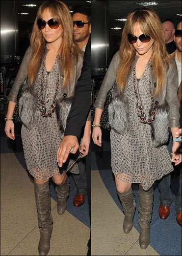 詹妮弗·洛佩茲實(shí)在是太漂亮了!結(jié)束了自己的日本宣傳活動(dòng),匆匆回國的詹妮弗·洛佩茲在機(jī)場(chǎng)大大的高貴了一把,灰白黑色的雪紡紗連身長(zhǎng)裙浪漫飄逸,外面為了保暖配了皮質(zhì)外套,但是袖口處的毛毛設(shè)計(jì)極致奢華高貴,大釘子書包混搭效果明顯,大配飾項(xiàng)鏈真是好看~~小編覺得喜歡這樣浪漫奢華的MM們一定要學(xué)習(xí)學(xué)習(xí),保證是回頭率300%。