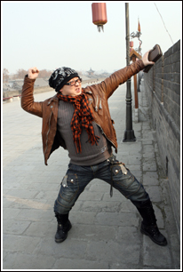 彭波在城墻上再次“瘋狂”起來。記者尚洪濤攝