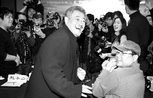 也許是一直沒有在春晚彩排現(xiàn)場出現(xiàn),趙本山吊足了媒體記者的胃口,以至于在昨天的發(fā)布會現(xiàn)場,主創(chuàng)剛一合影結(jié)束,半秒鐘不到就圍上去二三十架機(jī)器,而且每一個(gè)麥克風(fēng)都伸到趙本山前面不足5厘米的地方,別說采訪了,連對話都很難進(jìn)行。